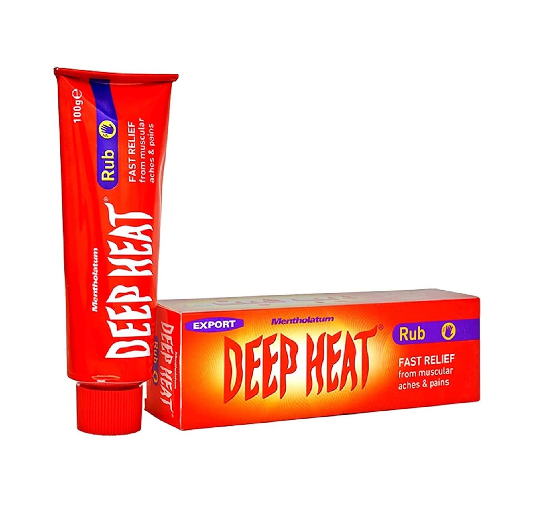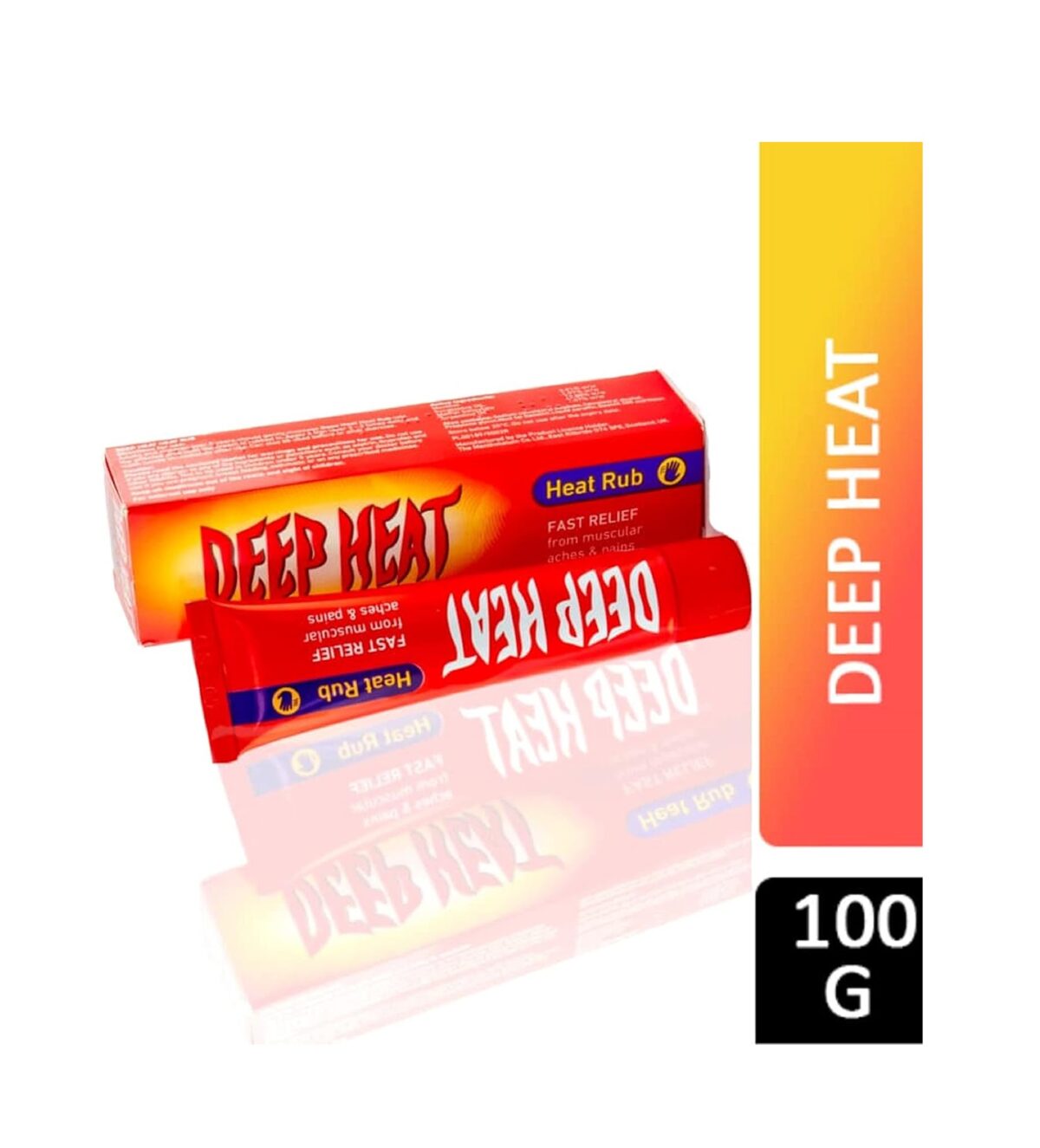 Recommended for the relief of muscular pains and stiffness including back and rheumatic pain, sciatica, fibrositis, sprains and chilblains. Deep Heat Heat Rub can be used before or after exercise and contains ingredients that provide pain-relief plus heat.