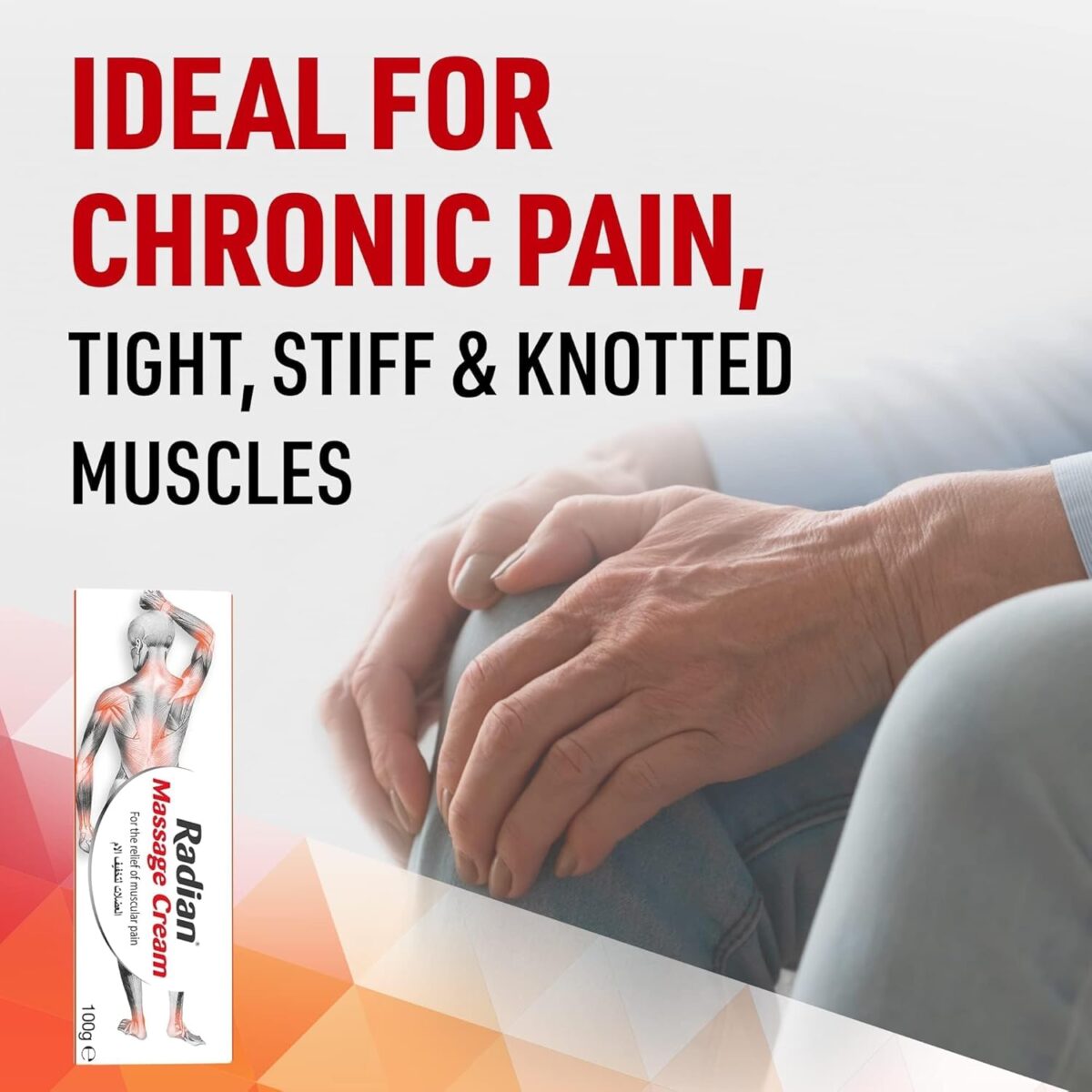Have you got back pain or rheumatic joint pain? Suffering from aching or knotted muscles? Are your muscles feeling sore or stiff? Or just need help to warm-up your muscles before exercise? Then Radian Massage Cream is your ideal partner. Radian Massage Cream provides targeted warming relief to treat muscular aches and pains directly at the location of the pain. The act of massaging the cream into the painful area also helps relieve symptoms. Radian Massage Cream – Heat the pain away!